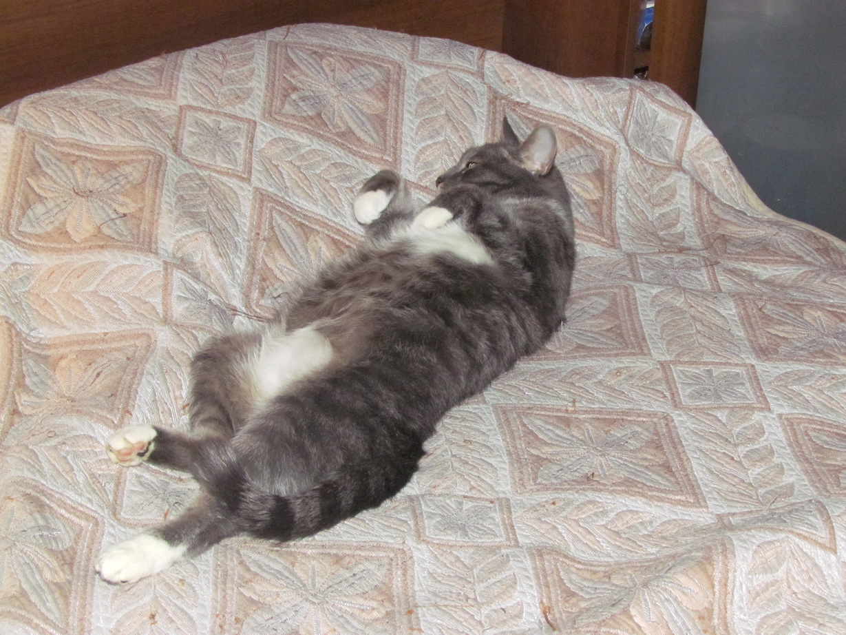 Солнце, чудесные киски! Матроскин такой брутал - развалился на постели, класс!
