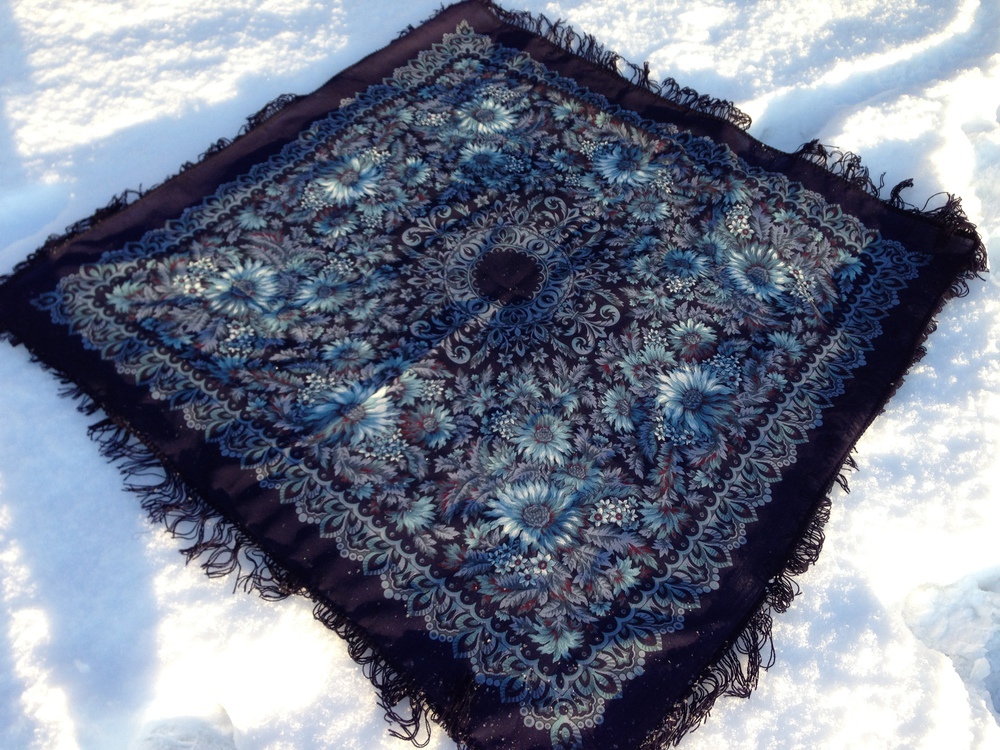 Поздравляю и понимаю вас! В истинном смысле красотун! У меня для многих шалей есть свои названия, для внутреннего употребления, так вот этот для меня - чеховский. Вспоминаются театральные постановки чеховских пьес, декорации белых дворянских усадеб, дамы с высокими прическами в белых платьях и белых же шалях. Не павловопосадских - но только потому, я уверена, что у них такого ВУ не было. Он бы соответствовал!