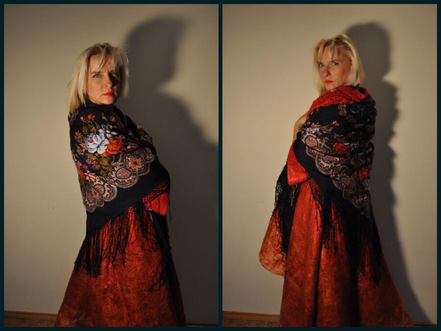 Труня, у вас прекрасное чувствоо цвета, да еще и платки и шали вы с таким достоинством показываете - Лирика на вас очень хороша, на первом плане сиреневые и оранжевые цветочки Клары Зиновьевой - прелесть!
