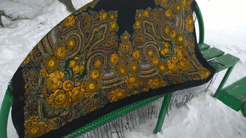 довольно необычный платок...он и ярким может быть, и темным. цветы горят и светятся! сегодня получила два комплимента - один от подруги, которая меня уже в 100500 моих платков видела-перевидела, и то она сказала, что красивый платок...и коллега, главный председатель "худ.совета" на работе, на который я вечно свои платки таскаю, очень его одобрила. и тетечка на остановке так смотрела на платок, что я думала - подойдет и спросит, где я его купила...но не подошла, постеснялась.