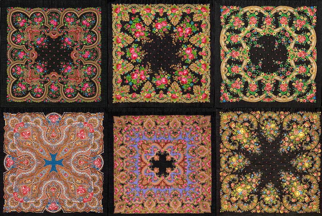 Протяжно " Рааазные они все... >< "У меня есть все из представленных, кроме Звонницы,( она тоже есть, но не 18-я), покупались мною постепенно (первые из чернопольных были" У камина" и" Черные глаза ", затем "Летние сумерки", " Душевный разговор","Русский танец" ,малыши "Варенька, "Незнакомка", "Вечерняя заря, "Вечерок","Золотые листья" , "Маков цвет"... "Матрешку" -18 95 см с этикеткой раздобыла, " Лето" и много старинок , Чернопольные традиционные - это моя слабость, любовь :: :: :: , благо разделённая, практически все ношу и с удовольствием, и с комфортом, при этом окружающие ( свои и посторонние) воспринимают это, как будто так и должно быть, норма, а не отклонение, всем нравится...при этом они -то, видимо, думают, что это у меня всё один и тот же платок, особо наблюдательные считают, что два, :lol: но это я что-то в лирические отступления ушла от темы...Так вот , несмотря на общность в целом, они совсем разные! Цветы , листья абсолютно разных оттенков, дополняющие рисунок детали орнамента, листики, цветочки и загогулинки , сама компановка рисунка создают совсем иной образ в каждом платке. :"