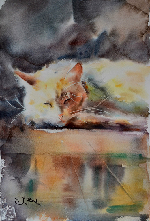 Понравилась картина, живьем значительно краше, батарея ободранная, кот как живой, сюрреалистическая ветка из иных миров в окно лезет.
