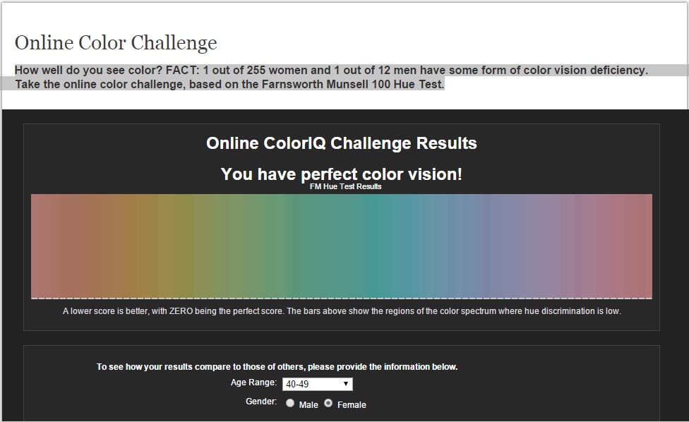 Дамы, раз вы тут сравнением цветов занимаетесь, опубликую такой тест на различие оттенков. (Кликните, чтобы почитать оффтопик)...