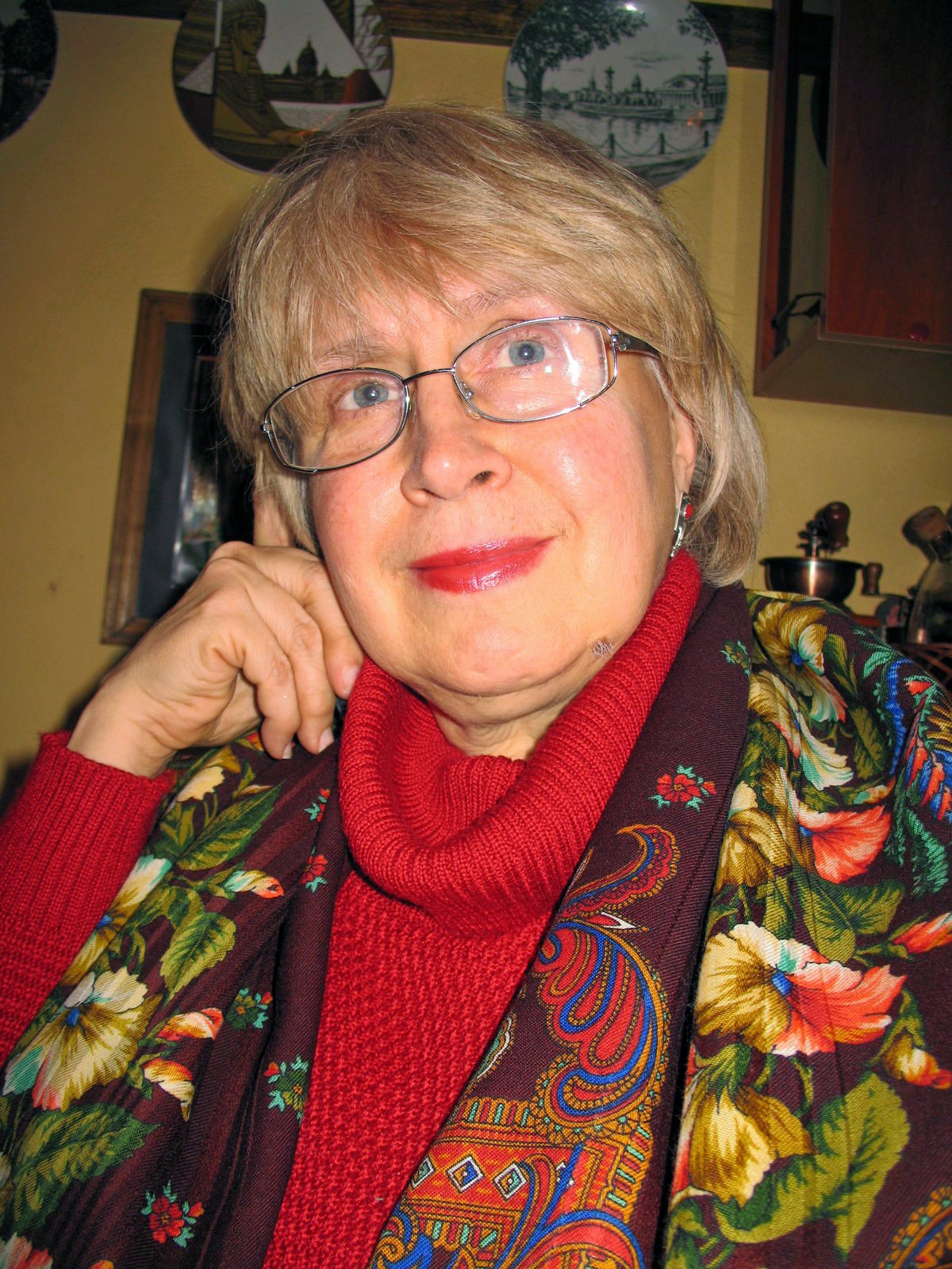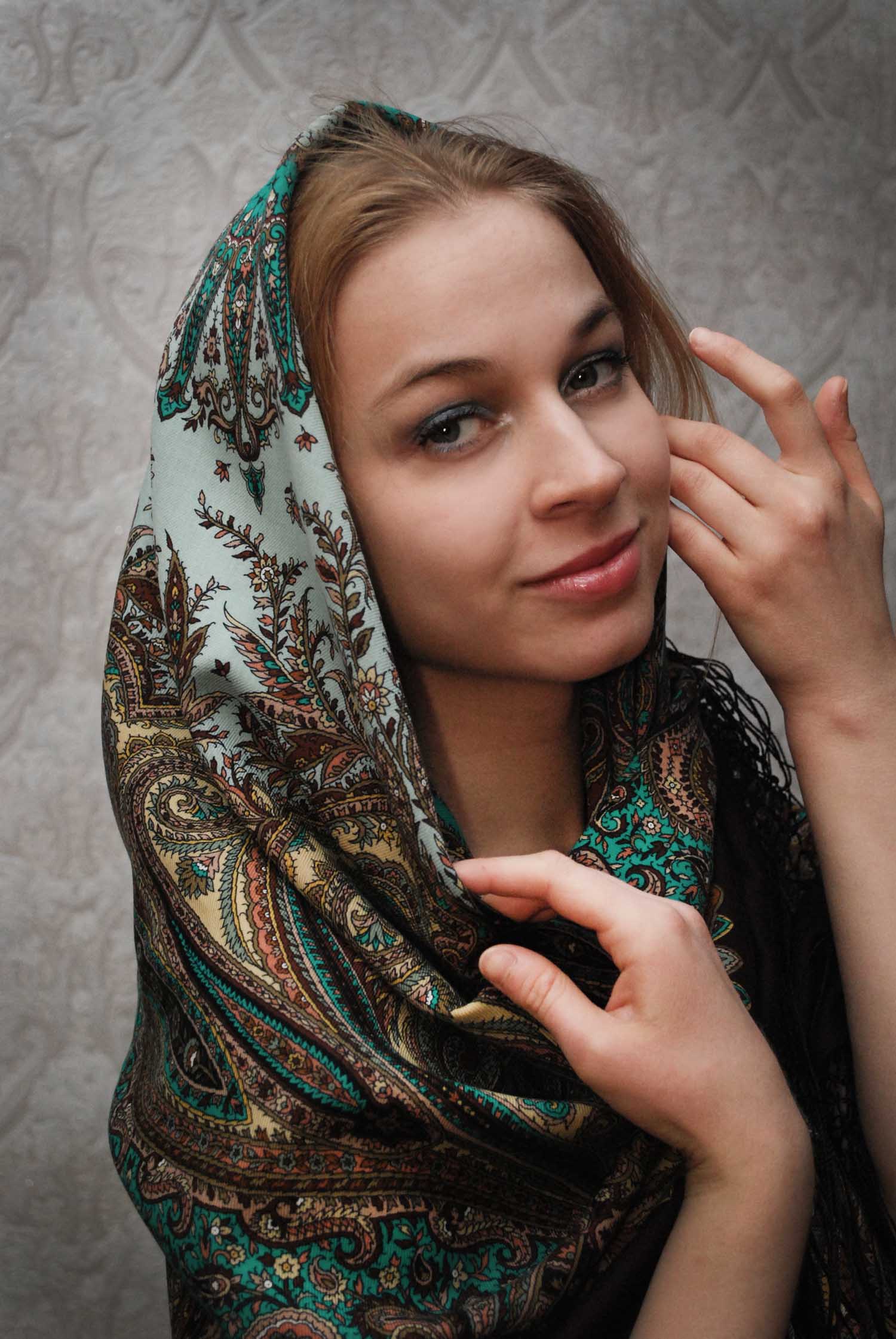 Шаль чудесная. Очень идёт Вам. С шалью, накинутой на голову- замечательная портретная фотография.