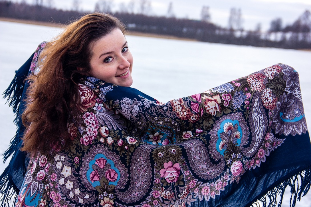 Демонстрируем ношение платков и шалей.