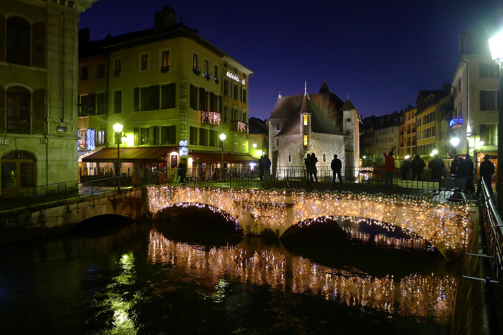 Налюбовавшись открывающейся сверху панорамой ночного Анси, спускаемся и опять оказываемся у Островного дворца-корабля, обогнув его с другой стороны.
