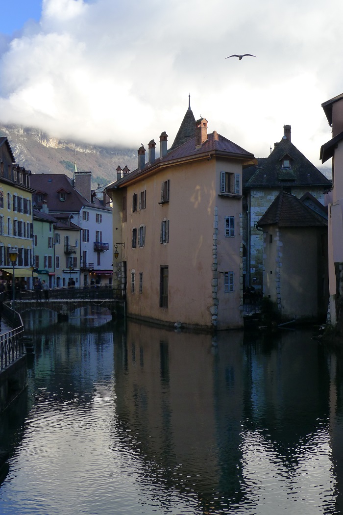 А вокруг по берегам стоят, как декорации, такие же древние постройки, и над их черепичными крышами возвышаются башни Château d'Annecy.