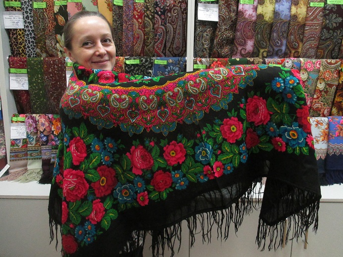 Демонстрируем ношение платков и шалей.
