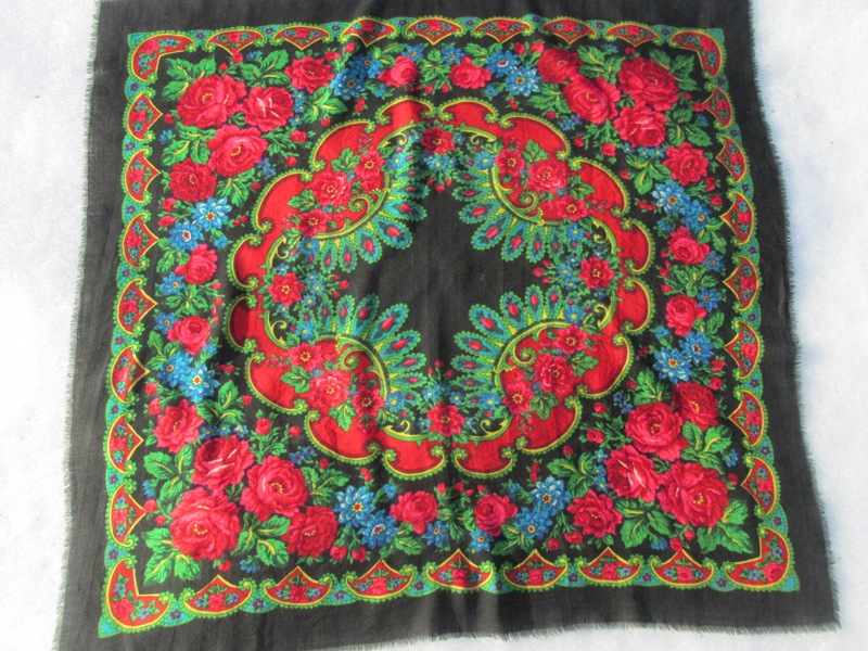 Итак, он приехал. Сказать, что руки тряслись, когда вскрывала коробочку - ничего не сказать. Боялась, что там может быть все, что угодно. Развернула, сразу на свет - дыр нет. Но платок ношеный, не новый. И, на мой взгляд, стираный. Кое-где черная обводка слегка подплывшая, ткань на выстиранном платке немного другая по фактуре, немного уплотнившаяся, нитки в ткани более "корявые", выпуклые. С изнанки на одной стороне потертость ткани на подгибке, бахрома немного лохматая. В общем, дамы, девушка побоялась личной встречи, потому как все эти признаки видны. А по почте можно подсунуть. Я долго думала обо всей ситуации. И вот к чему я пришла в результате: я очень хотела иметь У камина-15 (он мне безумно нравится), я понимала, что найти новый трудно, практически невозможно, если найдется, то, скорее всего, за границей и стоить он будет не столько (этот обошелся в 1200р. с пересылкой). Не все могут преодолеть внутреннюю брезгливость и носить "чужой" платок. Но от него избавились, он стал ничей. Нет, не новый. Но ничей. И мне стало просто жалко платок, жалко как бывает жалко выброшенных собак-кошек. Так что я "забила" на его недостатки и предысторию. И я не стала писать гневных писем барышне. Написала, что получила посылку и все. На этом поставила точку. Теперь у меня есть У камина-15, он мой, любимый, уже обихоженный: промороженный, выстиранный, пропаренный и обласканный. Прошу любить и жаловать