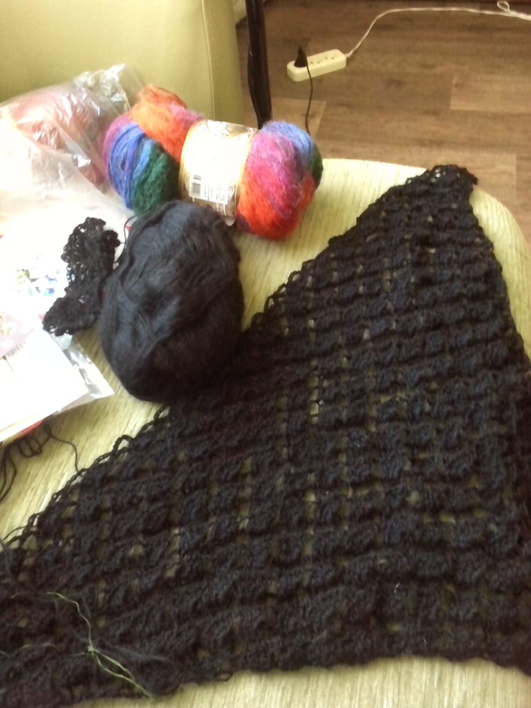а сейчас в процессе шаль (рядом лежат нитки на вторую)))