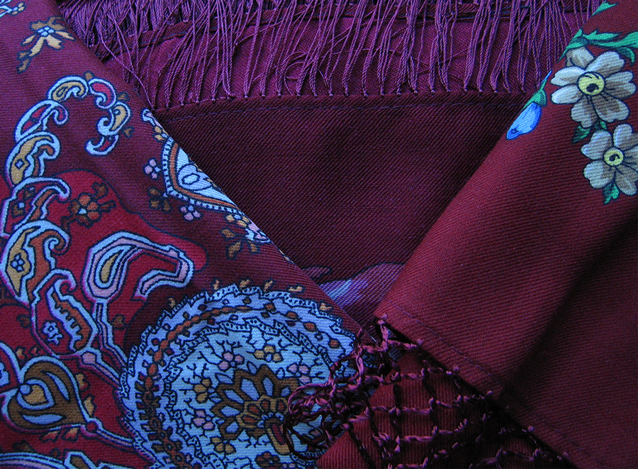 Дамы, с отставанием, но спасибо всем за комплименты (и не очень) моей Юноне. Платок - не находка, его купили в ППосаде в фирменном магазине, с тех пор у нас и живет. Отношение к рисунку среди окружающих такое же, как и на форуме - от полного взрыва мозга восторга до недоуменного пожимания плечами. В целом он незаметный, цвета приглушенные, но его можно долго разглядывать, этот оттенок розового долго не надоедает. Гвоздики прекрасны, как и наутилусы.