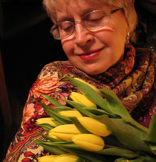 Лена-Календула, прекрасно выглядите, шёлковая Песня ветра пришлась и к лицу, и к волосам, и к помаде, и к тюльпанам. Душевный подарок!