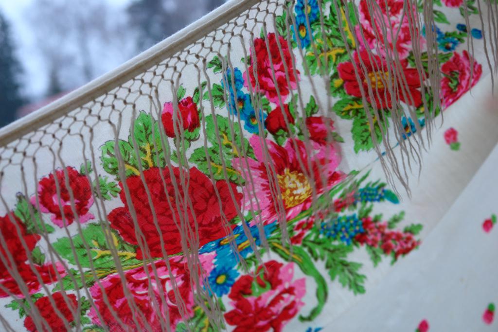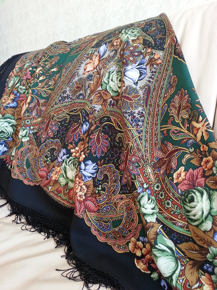Дамы, с отставанием, но спасибо всем за комплименты (и не очень) моей Юноне. Платок - не находка, его купили в ППосаде в фирменном магазине, с тех пор у нас и живет. Отношение к рисунку среди окружающих такое же, как и на форуме - от полного взрыва мозга восторга до недоуменного пожимания плечами. В целом он незаметный, цвета приглушенные, но его можно долго разглядывать, этот оттенок розового долго не надоедает. Гвоздики прекрасны, как и наутилусы.