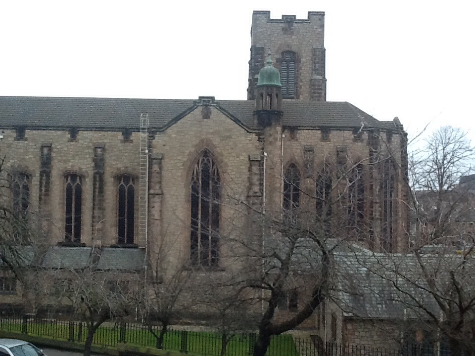 У меня тоже прямо через дорогу церковь, но в колокола не бьют. Зато в праздничные дни зажигают свет и можно любоваться витражами. И орган слышно. Внутри тоже очень красиво, все обшито резными дубовыми панелями. Снимок сделала поямо сейчас, вот такая погода - солнца уже несколько дней не видела...
