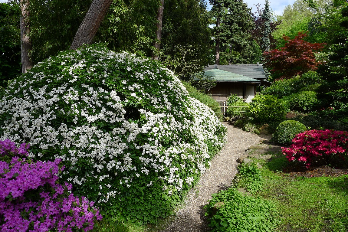 То там, то здесь из-за деревьев и кустов выглядывают каменные садовые фонари. Несколько таких фонарей были подарены Кану в первый визит в эту страну ее императором за содействие продвижению японских займов на финансовые рынки Европы.