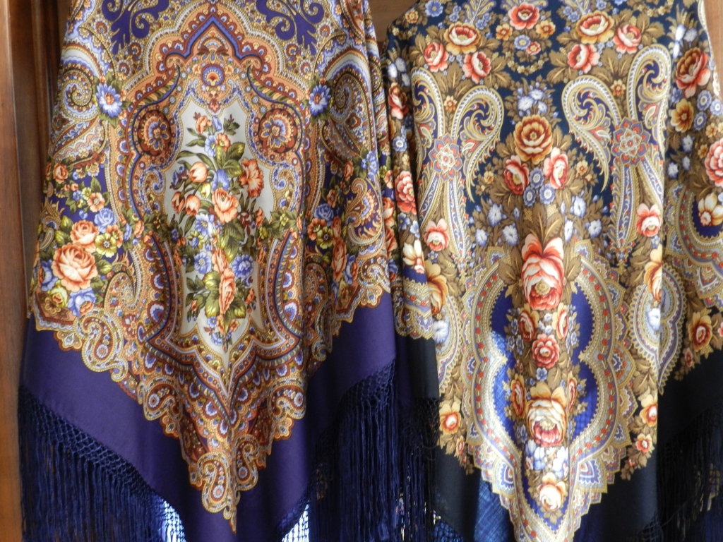 Ну, и когда-то встречала просьбу сравнить Юлию и Лето в Павлове. Мне кажется, колористическая идея одинаковая: синий фон исчезает за всеми оттенками бежево-коричневой гаммы. Но шали ни разу не кажутся похожими, на мой взгляд, судите сами...