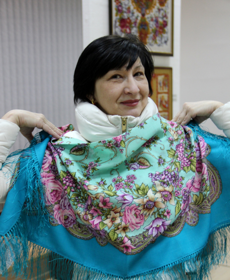 Елена Литвинова рассказала, что новый платочек "Озёрный край" писала под впечатлением сериала "Гордость и предубеждение", где все ездят на озёра. Как вы понимаете, авторский колорит - цвет воды и неба, 13ый, кстати, она в нём была. И ещё она угостила нас конфетами, названными по её отчеству "Николаевна", которые мы тут же разъели в кафе. (вот такие конфеты http://www.sweets.ru/sweets/sladosti/fr ... nikolaevna)