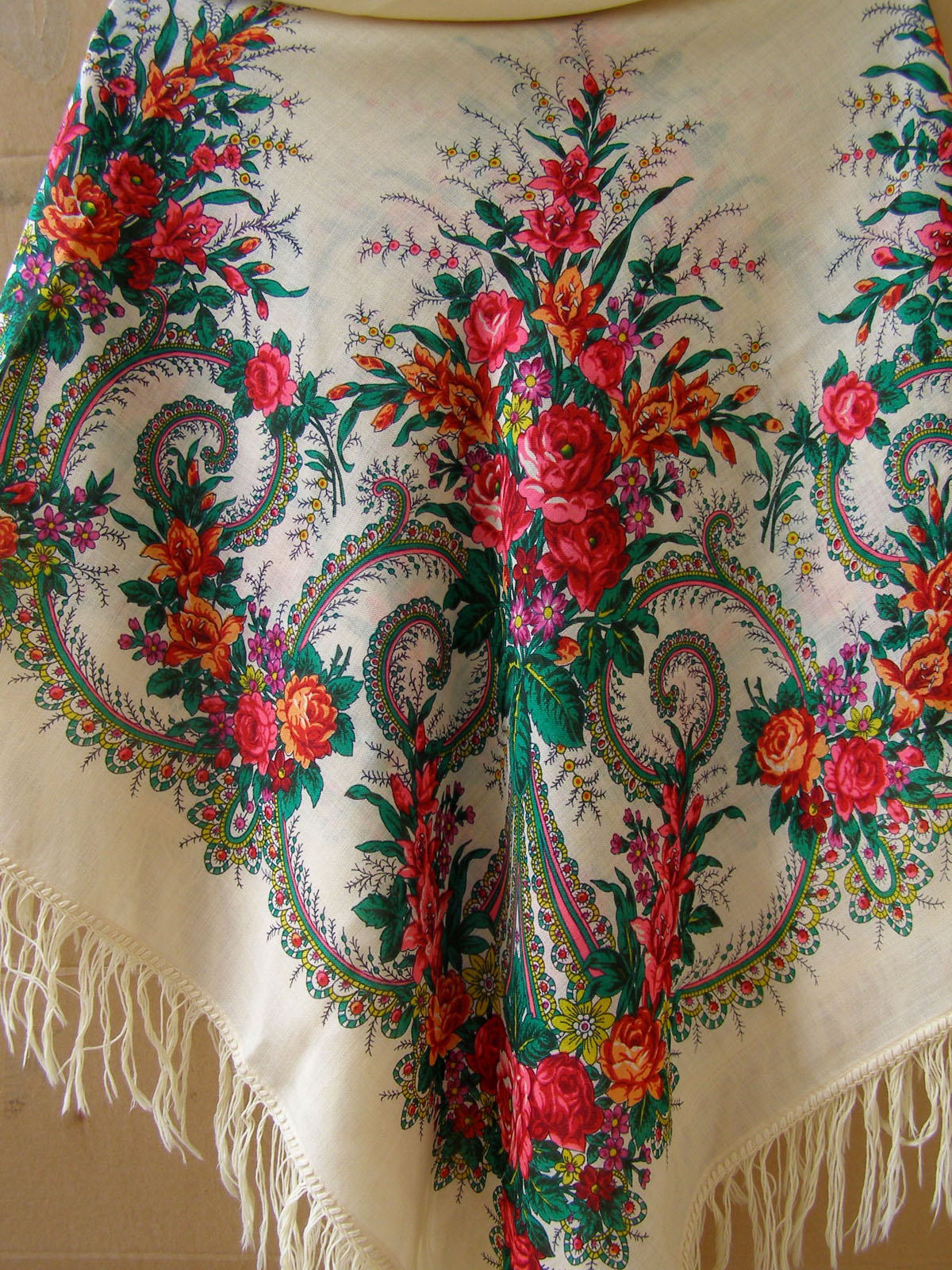 ПростоНастя, а шаль точно шерстяная - не хлопок? Такой набор красок использовался и для шерсти (где-то в 70-80 гг), но особенно много печаталось хб шалей, подобных по цветовому решению.ПростоНастя писал(а):На теплоходе видела несколько дам в павловопосадских платках и их производных. Почти все опознала, было пончо из Лета в Павлове, шарф из светлой (кремовой?) Филиграни, Ненаглядная и еще одна светлая шаль, показавшаяся знакомой, но название которой так и не вспомнила. Очень удачно тетенька в этой шали вошла в кадр, когда я фотографировала детей. Сама напросилась!