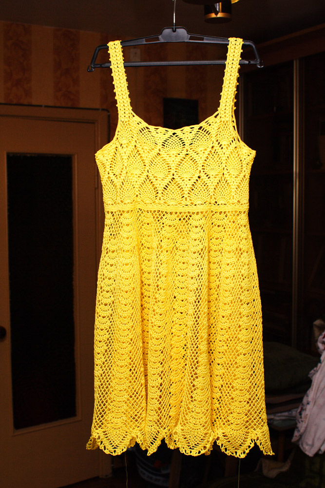 работа ручная. Размер 46. Вязала не себе (Кликните, чтобы почитать оффтопик)... Пряжи грамм 400 ушло. Сарафан получился девушке где-то по колено. А времени ушло недели три с половиной. Но это я очень спешила.