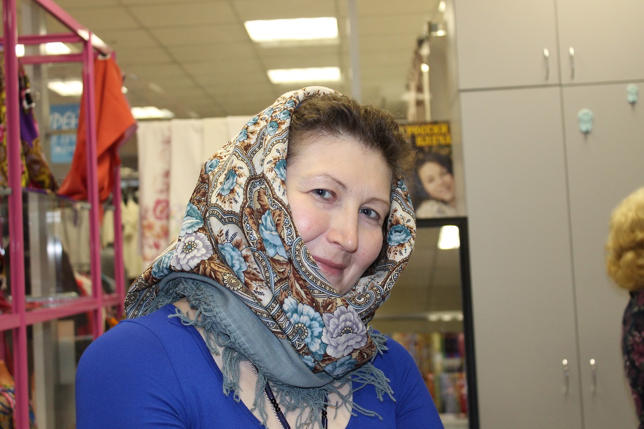 Еще заметила, что я хищно разглядываю платки у вас за спиной