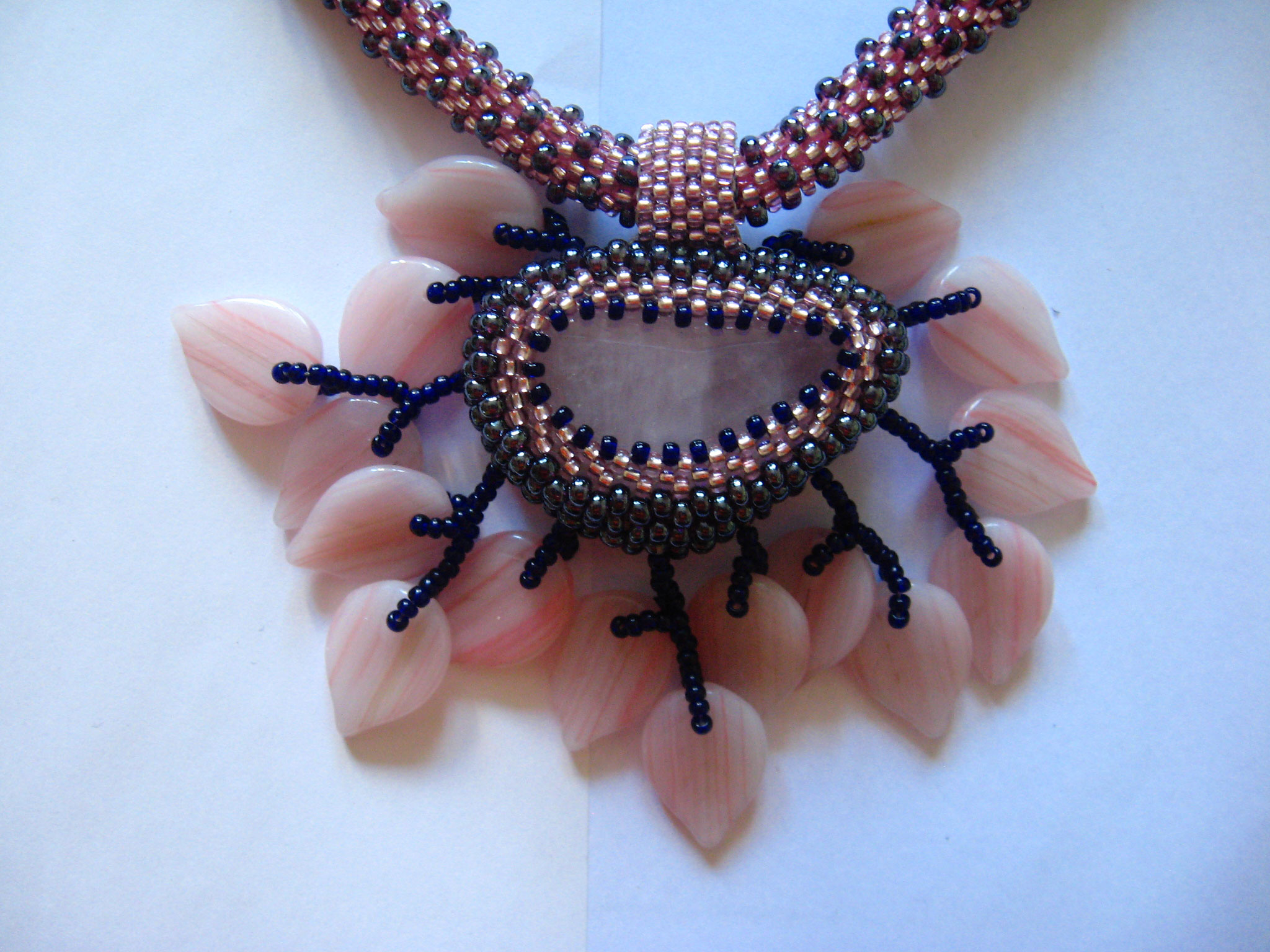 И вот ещё одна вещица. Пока не определилась с её назначением. Первоначально хотела сделать такое ассиметричное колье. Но в итоге оно получилось коротковато. Только на тоненькую шейку. Поэтому просто лежит, хлеба не просит.