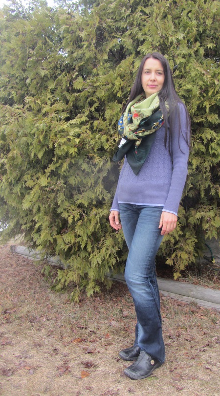Вот как так получилось, что на одной из фотографий - опять Весенний цветок, но уже только на мне. Видимо как новый платок попадает в руки - он намертво прилипает и к рукам и к шее.