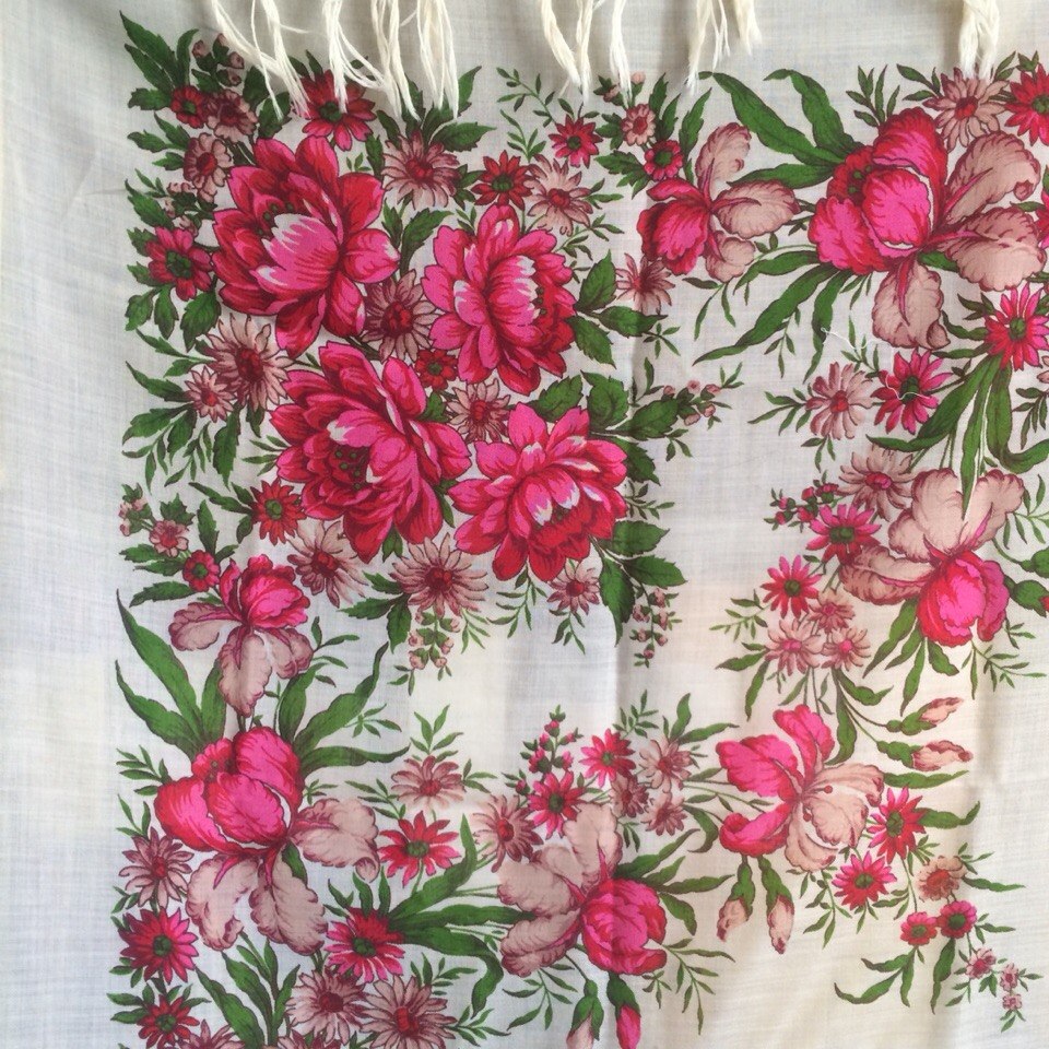 Получила в подарок от бабушки на 8 марта самый ценный экземпляр своей пока что небольшой коллекции - платок, моего года рождения или даже чуть старше меня!