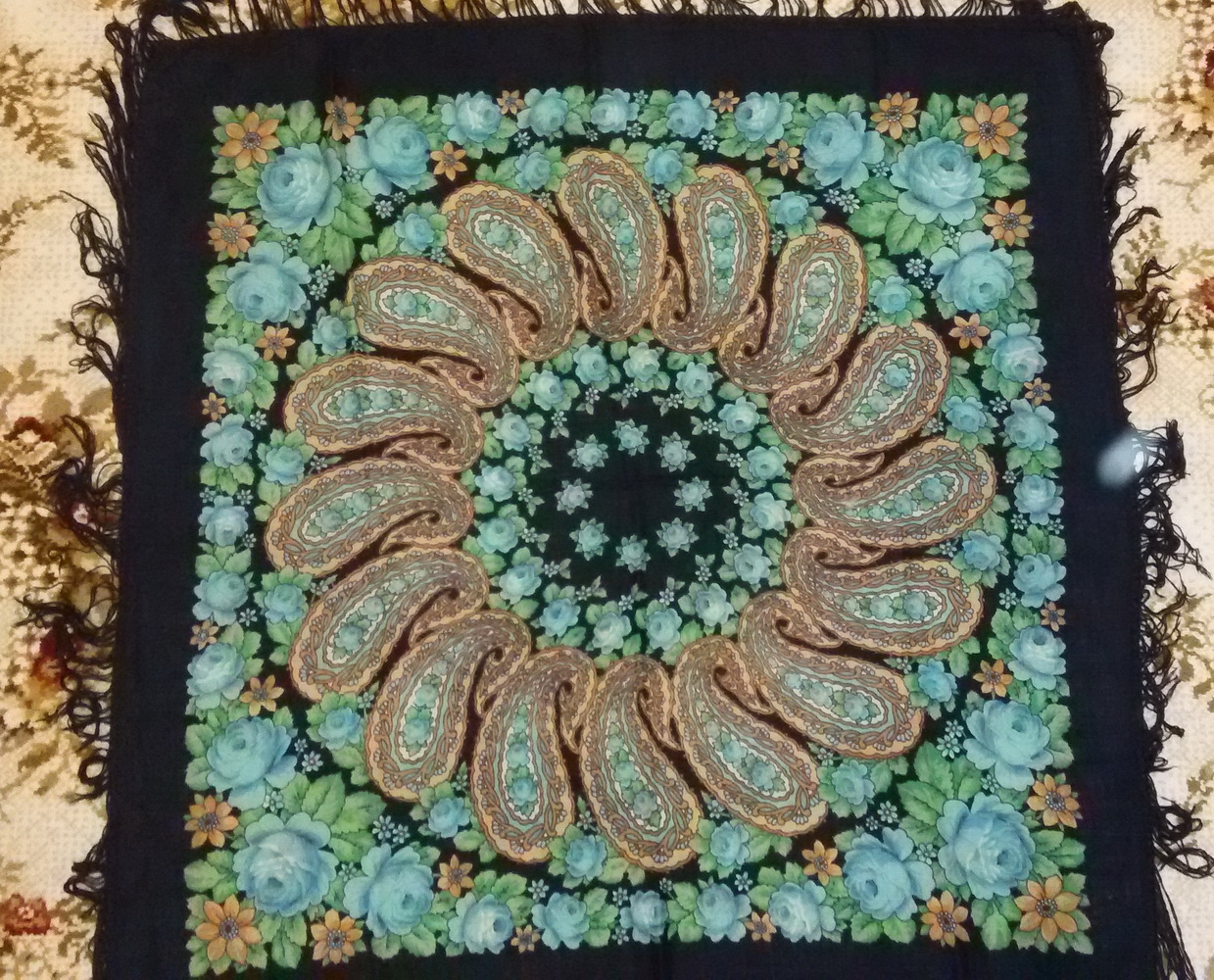 Не ругайте сильно, пожалуйста)) Облазила каталоги, но не признала этот платок. Куплен в начале 90-х.
