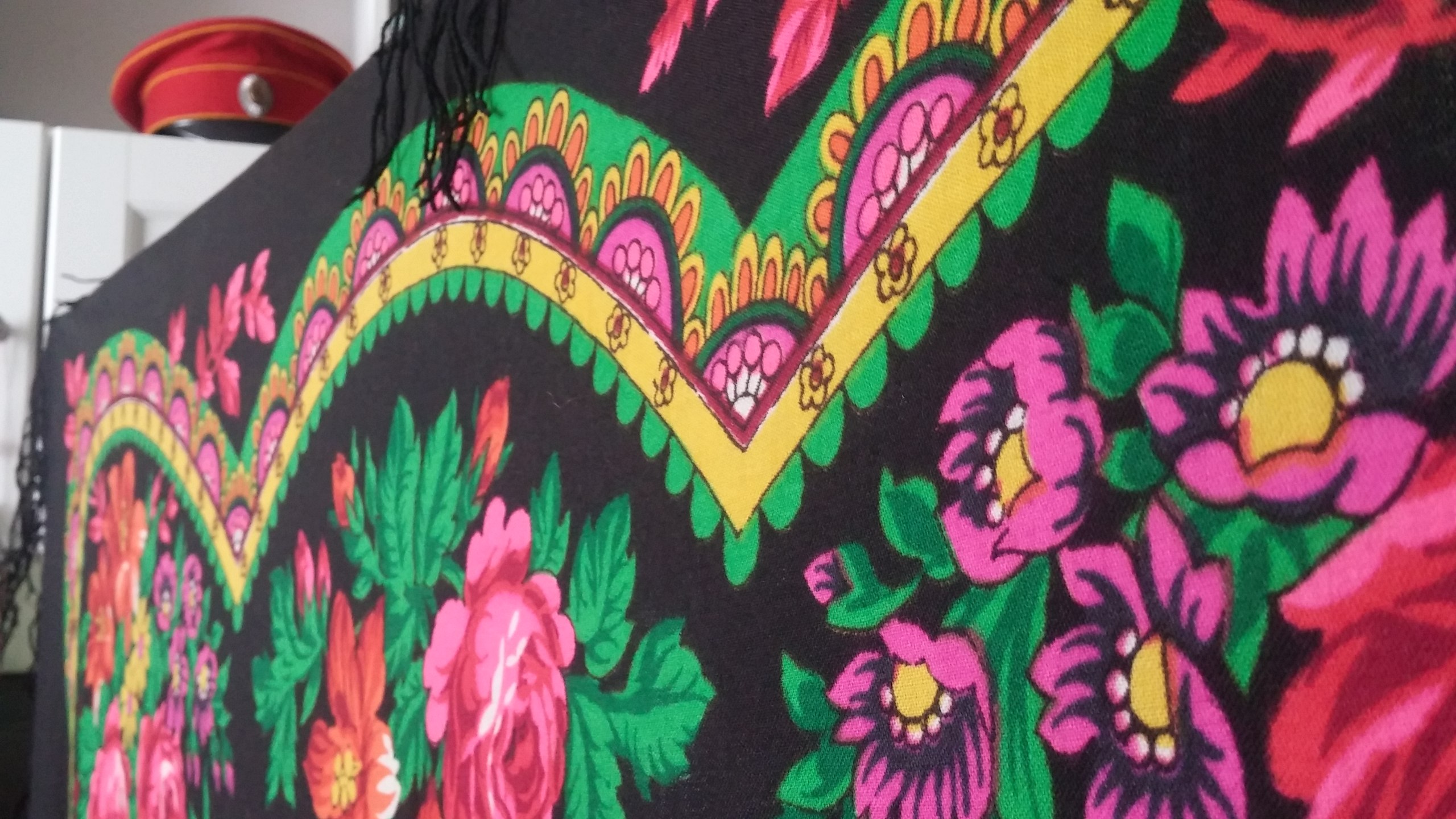 Sergilana, какой улов!)))) Мне в начале хлопковые шали казались грубыми и по рисунку и по качеству ткани и непонятно было зачем они нужны, но время идет и отношение меняется. Из плюсов у хлопка то, что его моль не ест и можно таскать дома и живописно бросать где ни попадя)))), и можно не боятся испачкать, т.к. можно постирать и к телу хлопок приятнее, чем шерсть. Вобщем я свою хлопковую (такую как Вы себе оставили) таскаю в хвост и в гриву и летом и зимой (зимой дома). И прикупила еще две, одну совсем старенькую,ее берегу, а со второй ободрала бахрому и хочу пришить кружево хлопковое в тон цветочков.