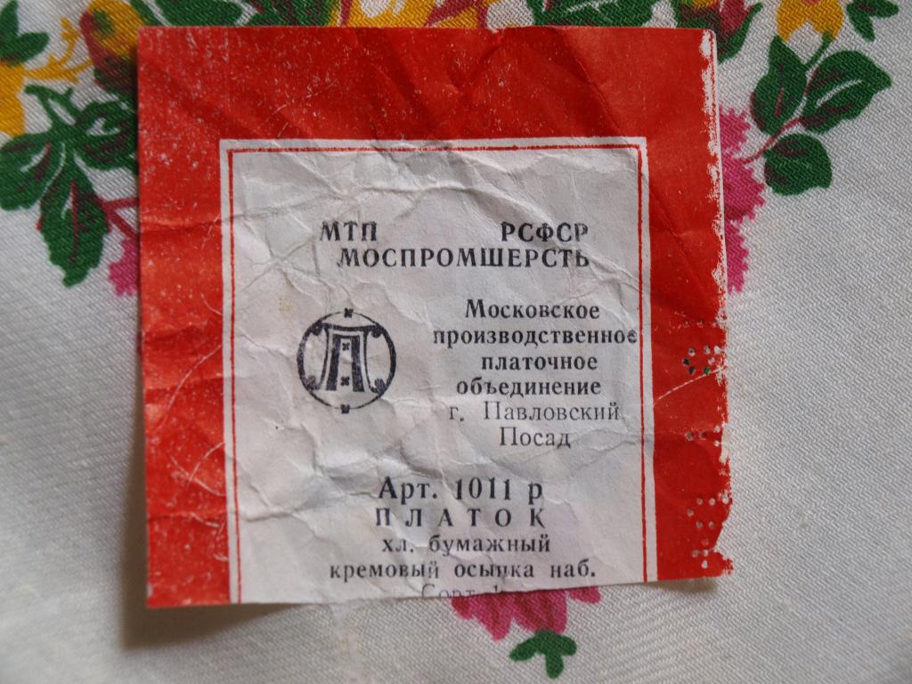 По хронологии у нас идет Московское производственное платочное объединение. Несколько этикеток.