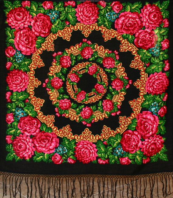 Два платка пришли ко мне с небольшим временным интервалом, из разных рук, разного размера и колорита, но оказались родственниками))))). Старшая "сестра" шаль "Галина"-18 старой печати и маленький безымянный, который при ближайшем рассмотрении оказался переработанной версией старшей "сестры". Фрагменты рисунка явно взяты с шали, отсутствует черный контур, нет серединки,(она бы не поместилась на таком малом формате) некоторых элементов не хватает, например, "горошков" в стручках)))) , но в остальном сходство присутствует.