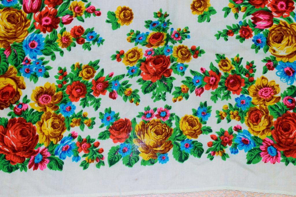 Мы знаем, что "Оранжевые розы" 1937 года были набиты вручную. Тот платок, что у меня (предположительно, производства Киевской платочной фабрики) - отпечатан машинным способом, скорее всего по шаблону. Значит, в процессе перевыпуска при подготовке шаблонов в оригинальный рисунок были внесены незначительные изменения. Эта практика не уникальна - "Молитва" Г.И. Сотсковой создана по мотивам "Кругов" Аболихина, также "по мотивам" восстановлен "Тонкий ажур", ""Пастораль". Но в любом случае "украинский" перевыпуск является именно версией "Оранжевых роз", это очевидно. Платок получился по-украински красивым, сочным - мне он нравится.