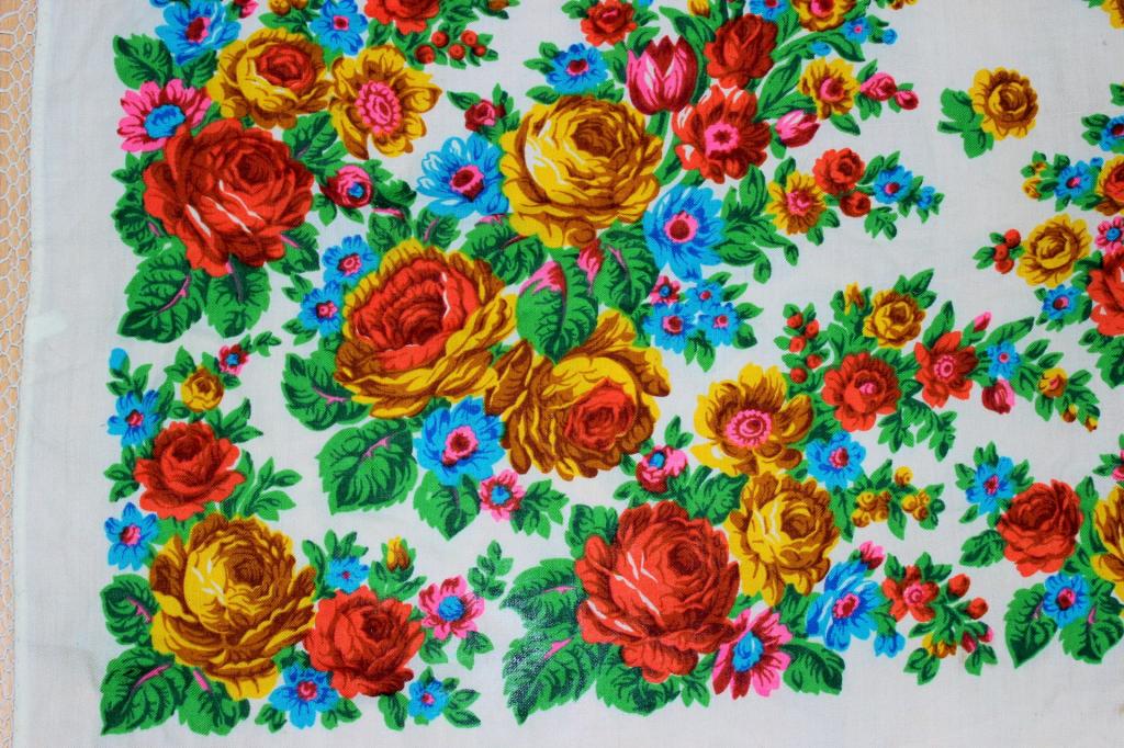 Мы знаем, что "Оранжевые розы" 1937 года были набиты вручную. Тот платок, что у меня (предположительно, производства Киевской платочной фабрики) - отпечатан машинным способом, скорее всего по шаблону. Значит, в процессе перевыпуска при подготовке шаблонов в оригинальный рисунок были внесены незначительные изменения. Эта практика не уникальна - "Молитва" Г.И. Сотсковой создана по мотивам "Кругов" Аболихина, также "по мотивам" восстановлен "Тонкий ажур", ""Пастораль". Но в любом случае "украинский" перевыпуск является именно версией "Оранжевых роз", это очевидно. Платок получился по-украински красивым, сочным - мне он нравится.