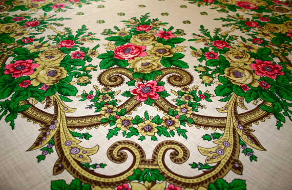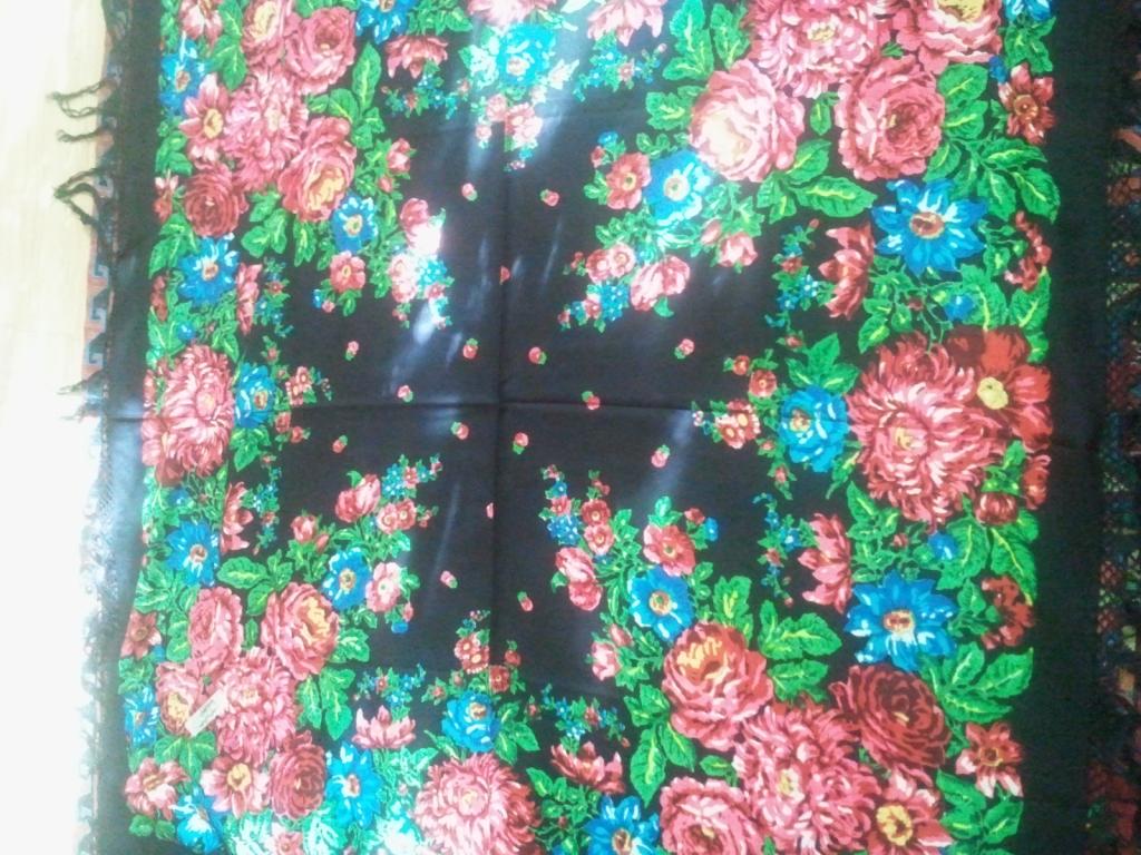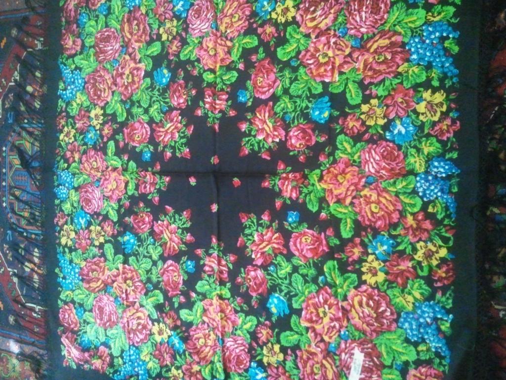 Вот такая красота хранится в некоторых сундуках. Хозяйка даже сообщает точно дату - 1898 год, платок был подарен на рождение первенца. В местном музее сказали, что точно павловопосадский. Размер 120 на 120.