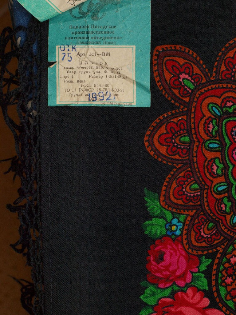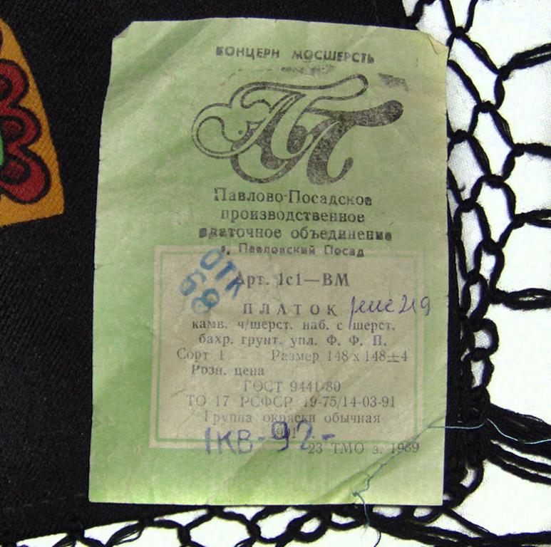 С 1992 года фабрика стала АОЗТ "Павлово-Посадские шали". Вот этикетка.