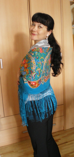 Демонстрируем ношение платков и шалей.