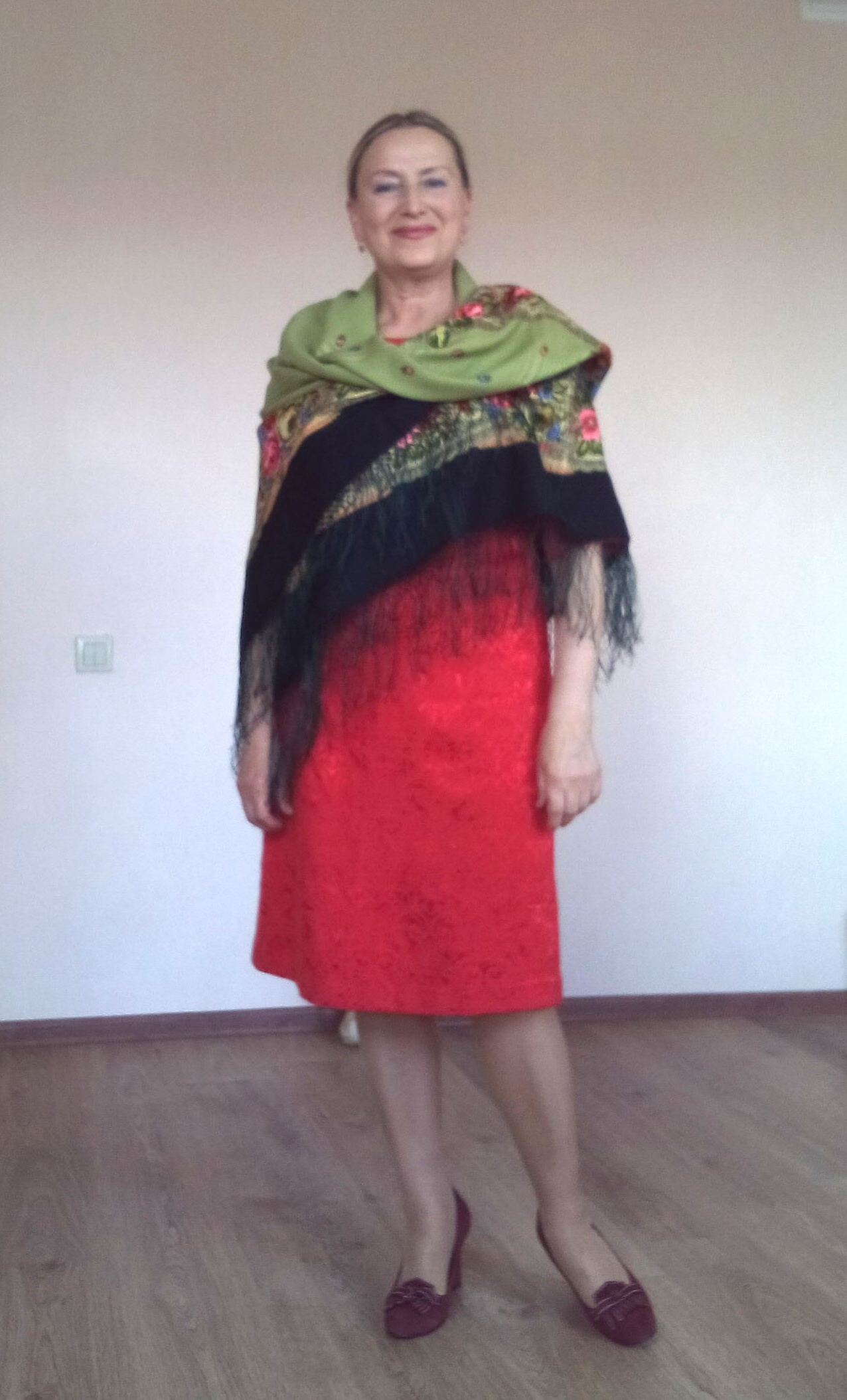 Я ещё и тут отмечусь в Имениннице, в которой вчера гуляла по музею Пирогово в Киеве...Очень весенний, радостный платок! Ждал выхода в свет всю зиму