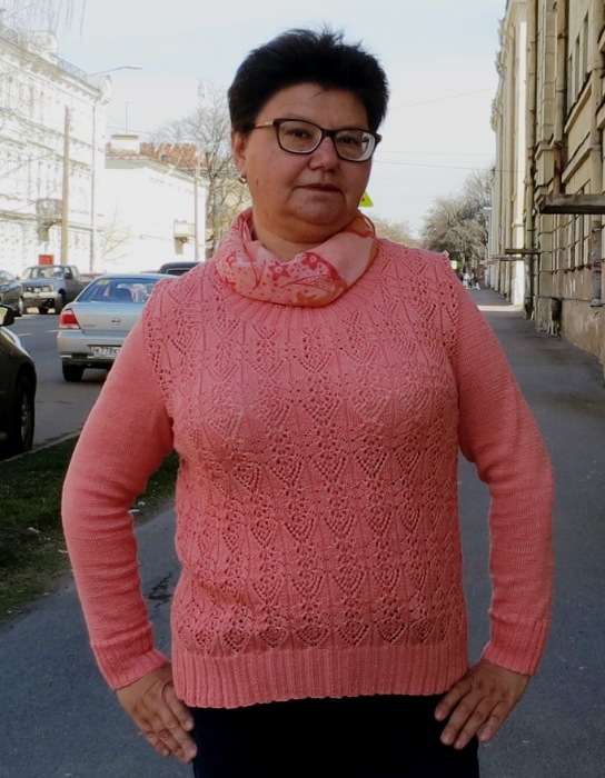 ТаЮрик, красиво! Оба платочка хорошо к свитеру подходят, Иван-купала наверное больше для повседневного варианта, а Королевский Бал - куда-то выйти, шикарно смотрится, хотя представляю какой он скользкий