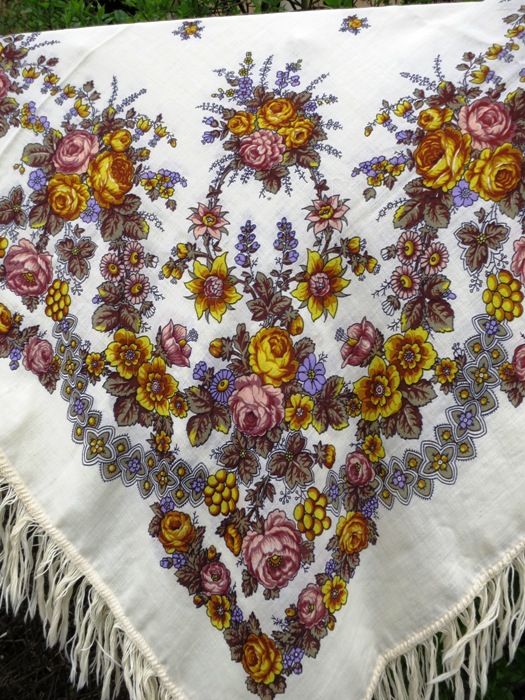 Как в основном и бывает с шерстяным винтажом здесь у нас, сохранность хотелось бы получше. А жаль, платок просто чудесный. Мне почти все рисунки Ольшевской нравятся, а этот в особенности - очаровательные цветы.