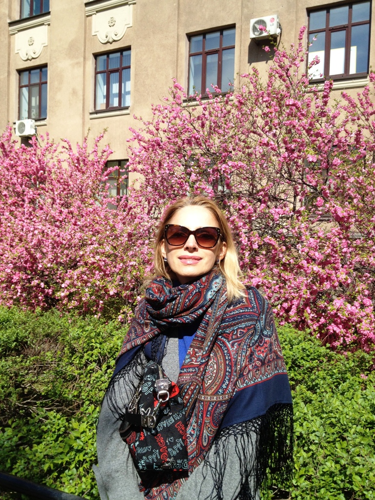 Sergilana, очень нравится Ваша манера ношения шалей - стильно и непринужденно. Таинственный вечер засиял необычным розовым свеченеием на фоне цветущей сакуры (это ведь она, да? :: ) И еще понравился Ларец самоцветный синий (только, кажется, это было в другой теме)