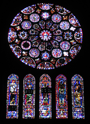 Да, витражи хороши! Кое-где видны "заплатки", витражи пострадали от времени... Они датируются началом 13 века!