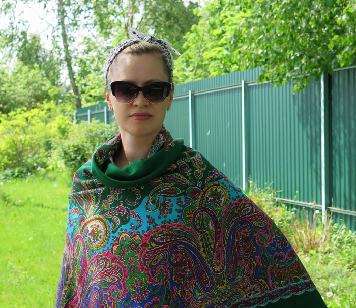 Демонстрируем ношение платков и шалей.