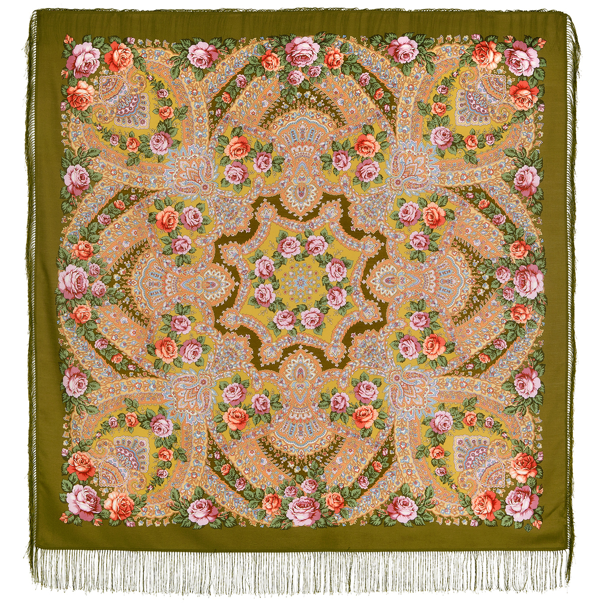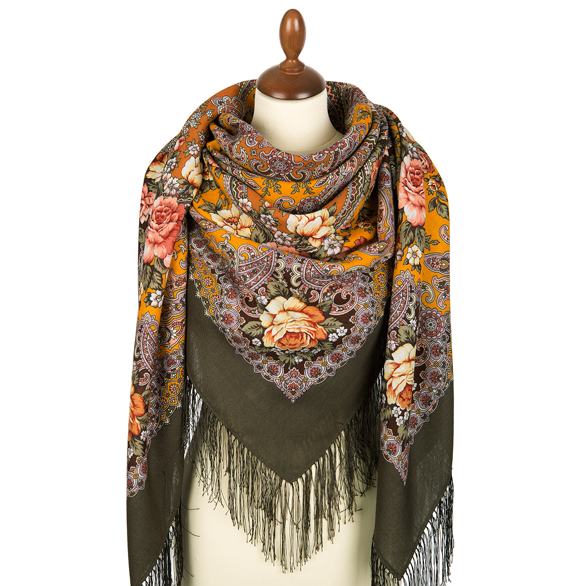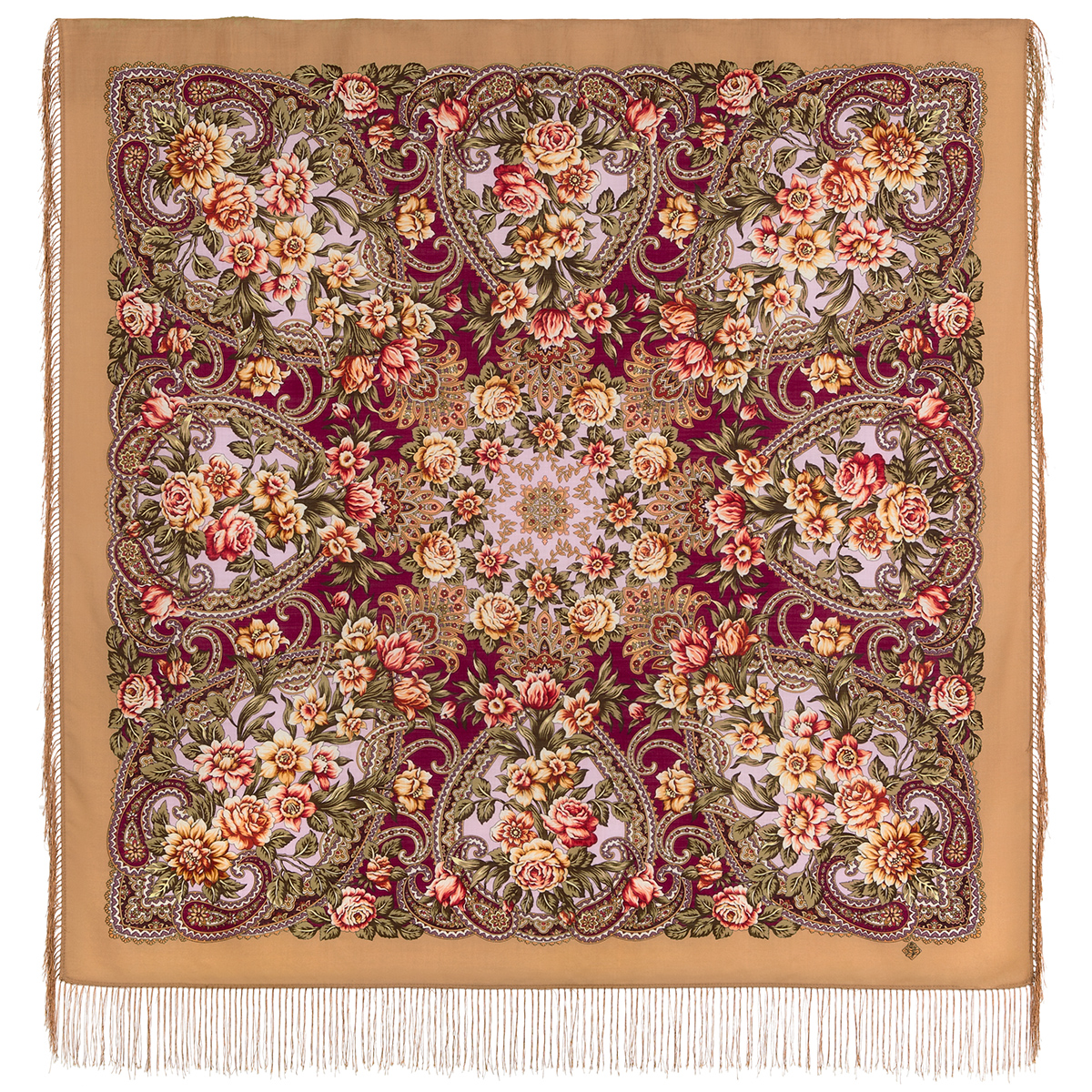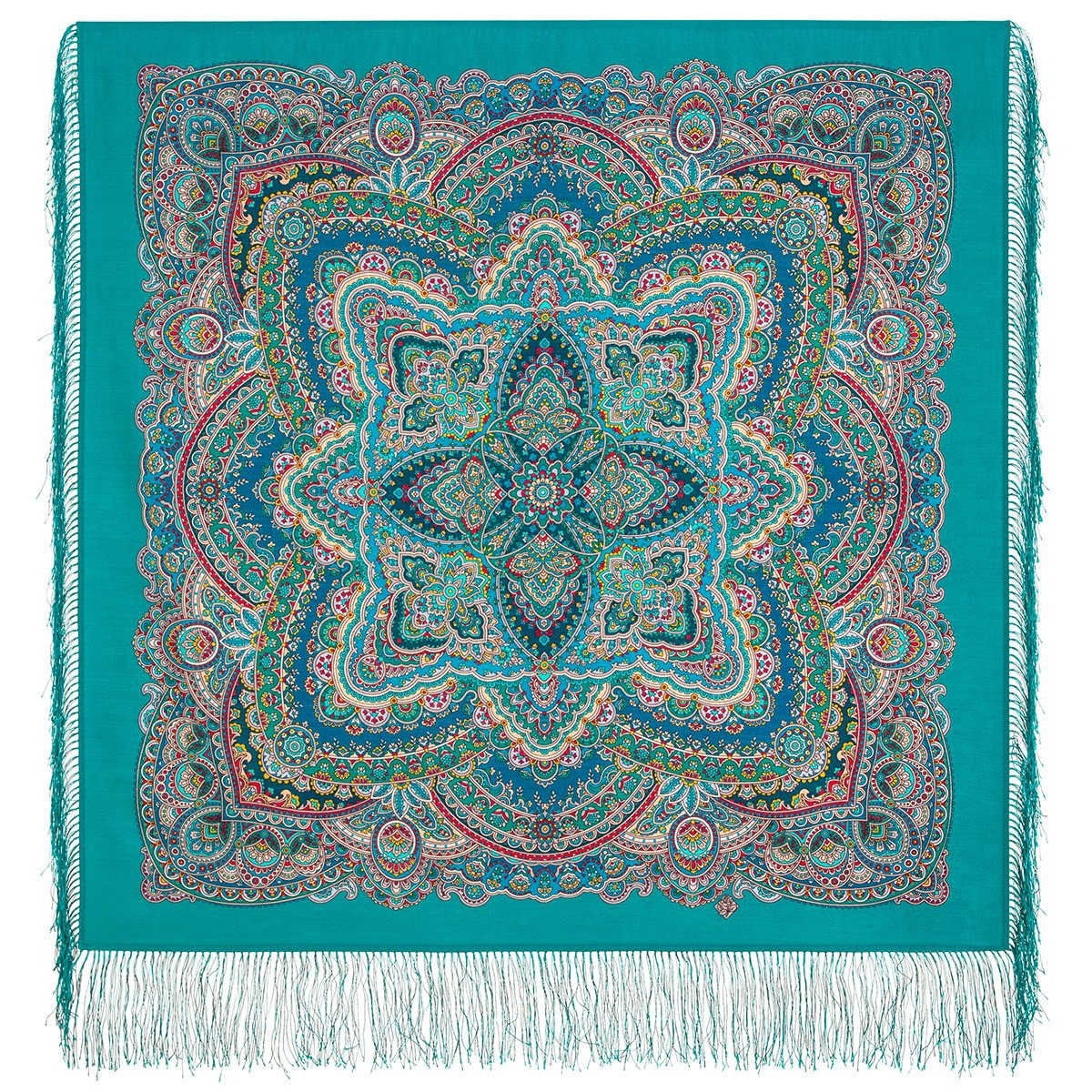 Платок шерстяной с шелковой бахромой, 125х125 см.