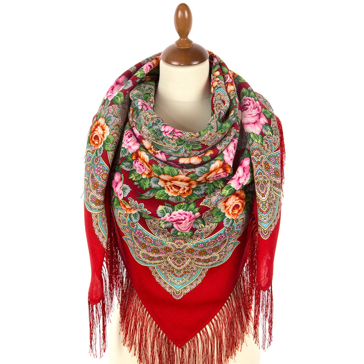 Платок шерстяной с шелковой бахромой, 125х125 см.