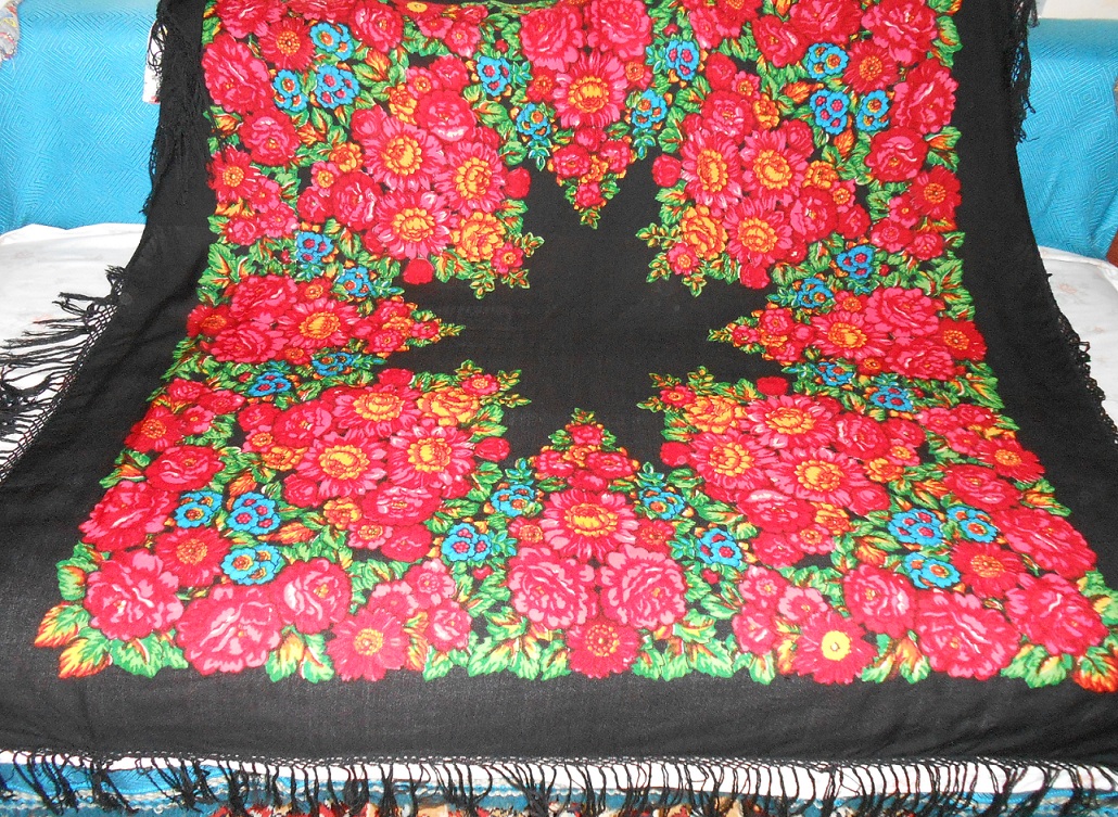 Дамы, появился у меня платок БС №131 колорит 2. Фото продавца не передавало дивной красоты платка. Сегодня он у меня. Мой сын, увидев его, сказал:" Мама, красивый платок. " И я с ним полностью согласна. Дивные, горящие цветы, в этом душевном платке, полном контрастов. (Кликните, чтобы почитать, что спрятано под катом)...