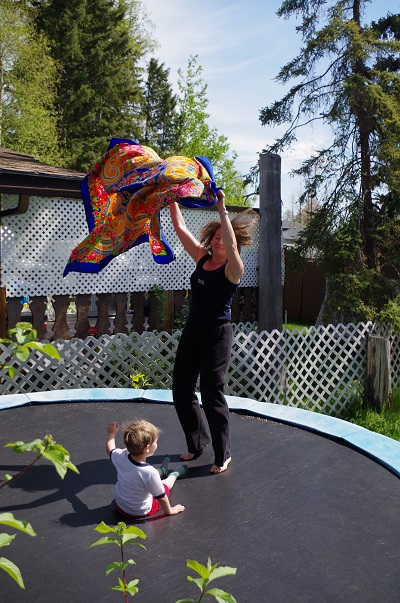 Хулиганство было так увлекательно, что прибежал соседский ребенок, и со смехом забрался на батут. Он так счастливо смеялся – видимо игра в платочки ему очень понравилась. Конечно, с ребенком на батуте – надо смотреть за ребенком а не за платками, поэтому мы просто потом попрыгали без платочка и довольные жизнью разошлись - я пошла собираться, ну а он побежал к бабушке.