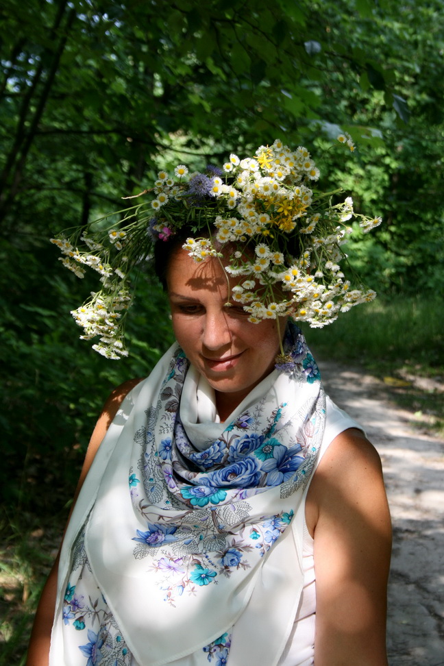 Оксана, ^% фото очень красивые, такой таинственный лес! Нежнейший платок и веночек из ромашек Вам очень к лицу!