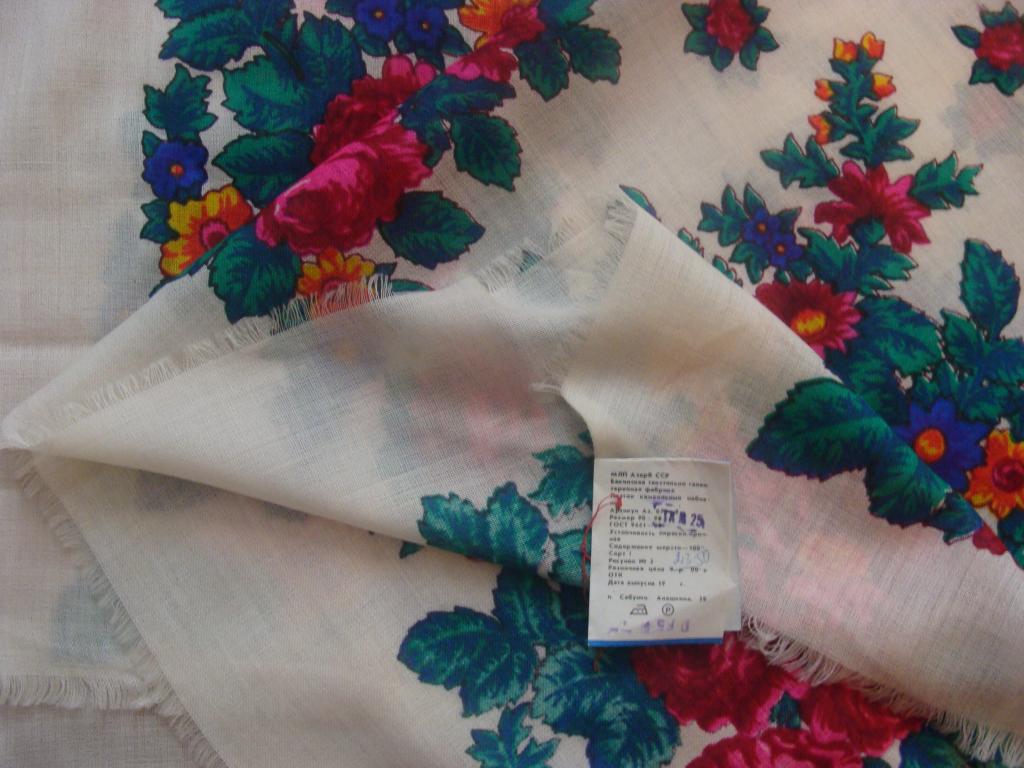 Мытищинская фабрика художественной росписи тканей, 1983г. а сам платок вот такой Даже не поняла, шерсть или хлопок.