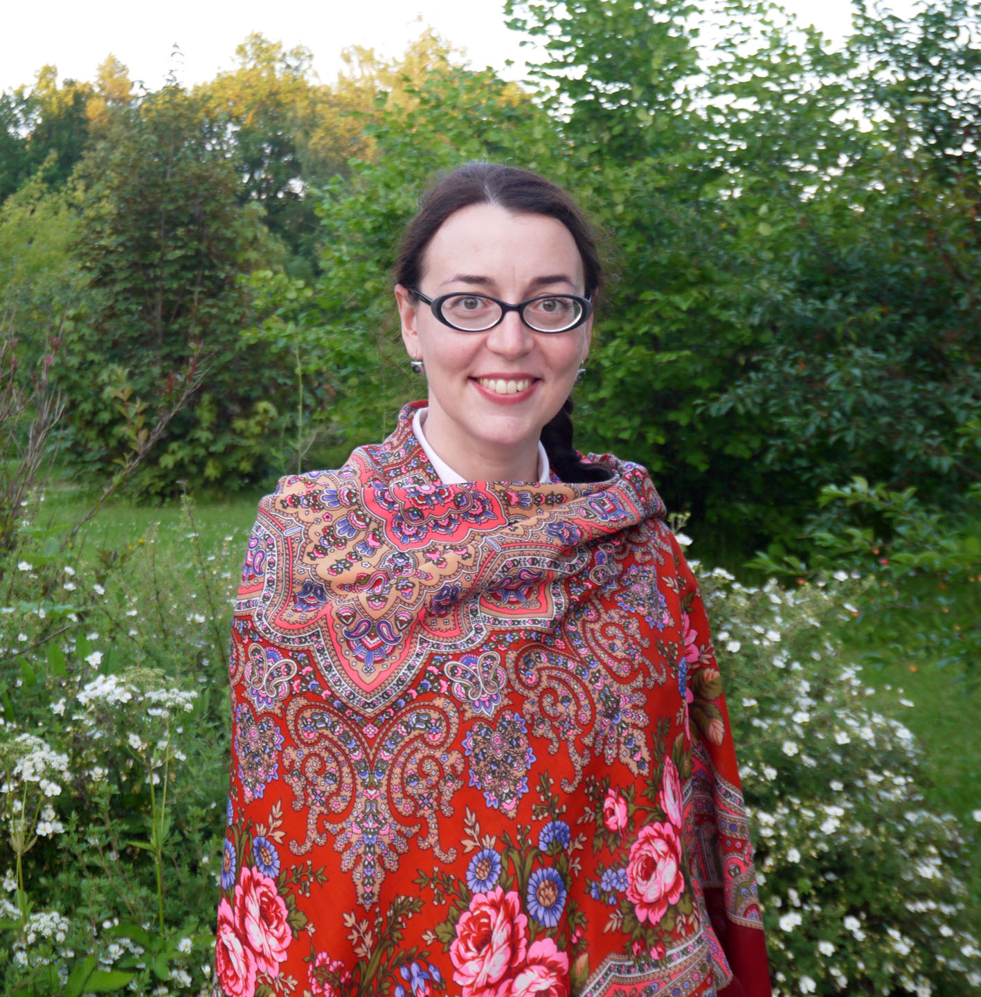 дама червей- Марина,мне обе шали на тебе нравятся , тебе все хорошо ни одним платочкам не испортить. Медальоны совсем не строгие, напротив, кажутся веселыми, разбитными, яркими.