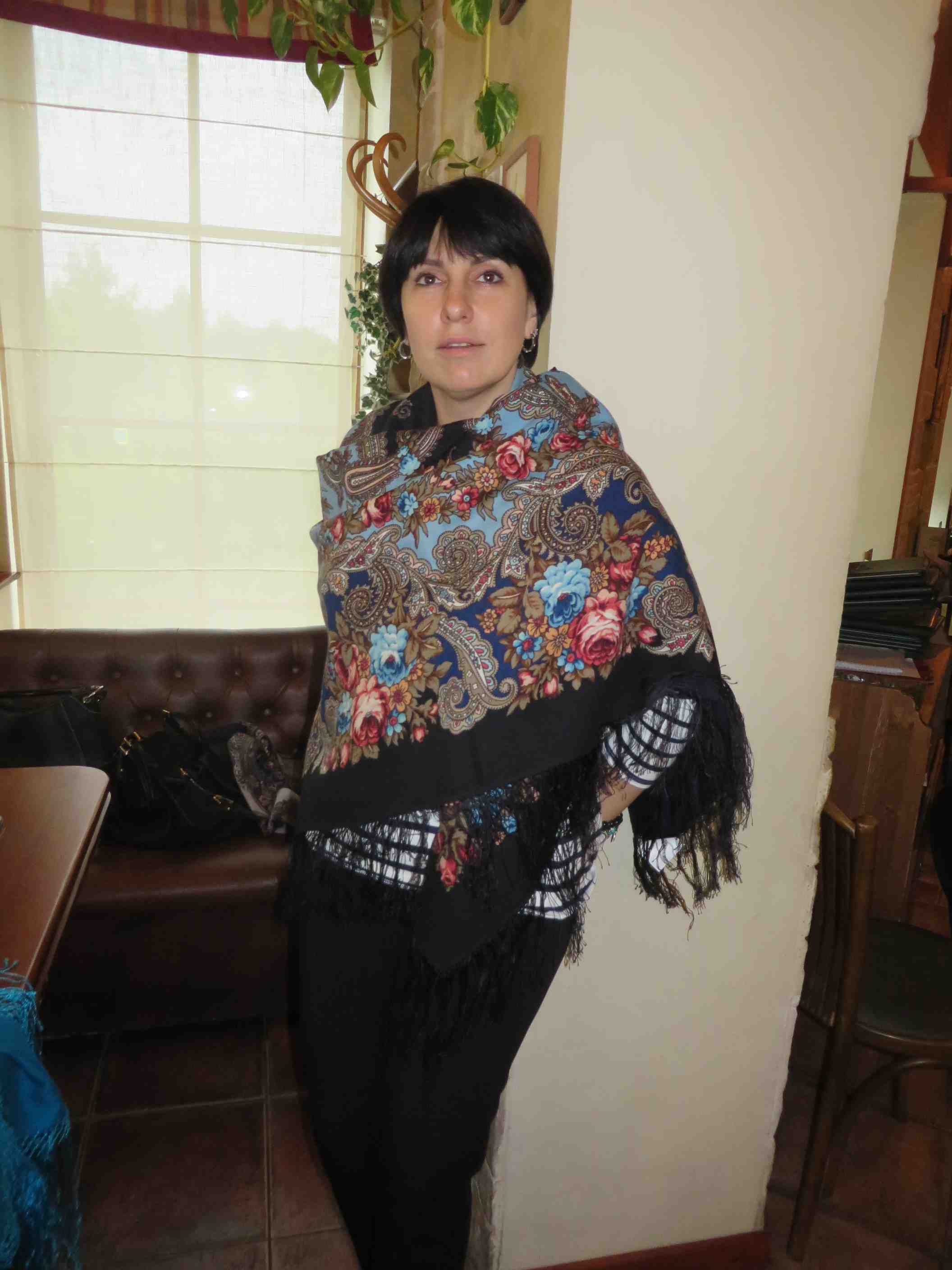 Вот тут мы с Машей демонстрируем Розы и пионы 11, но главное в этом показе - бахрома! Где тон в тон - это дело рук Елены (на мне), а которая светлее поля шали - выбор мануфактуры (на Маше).